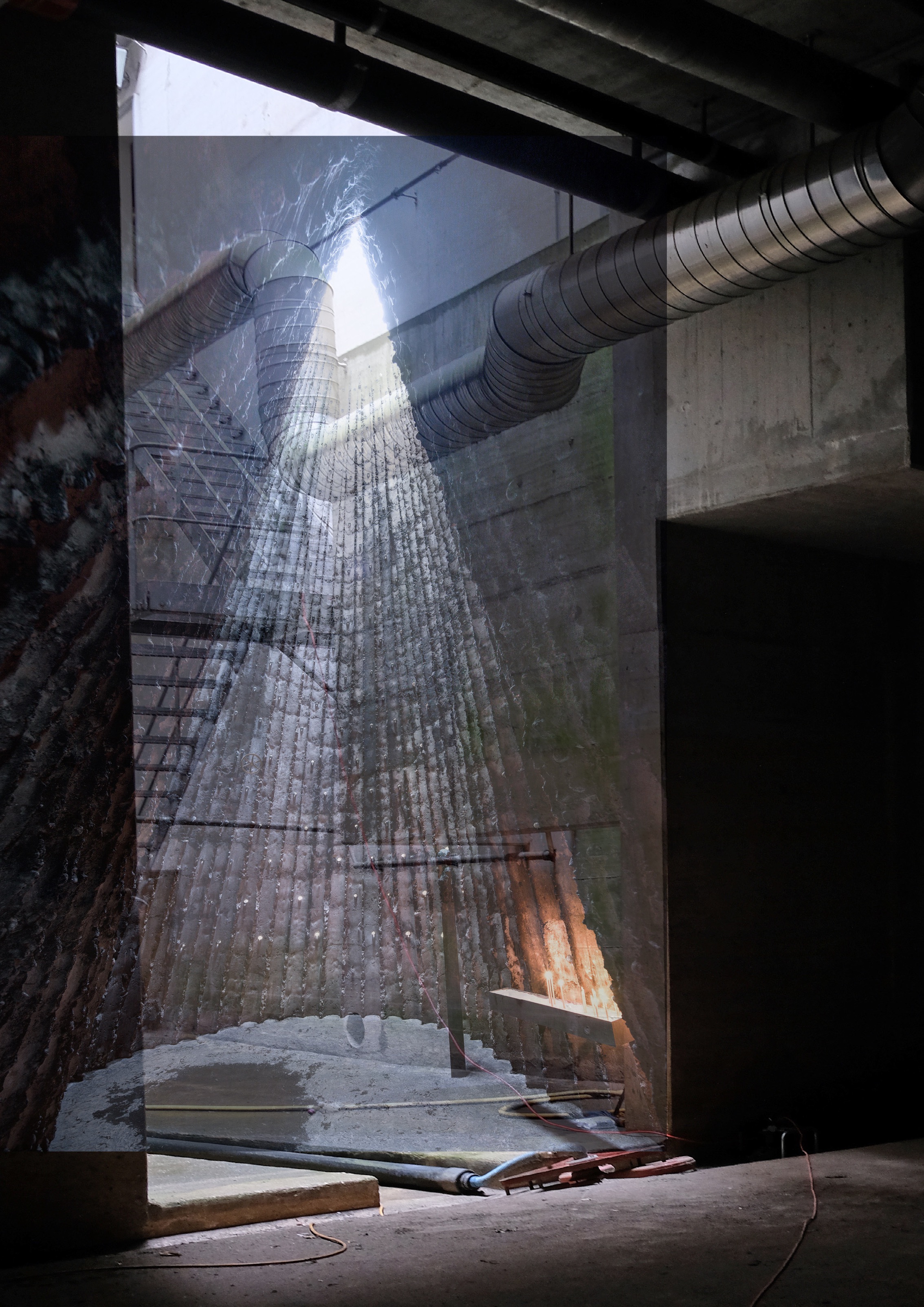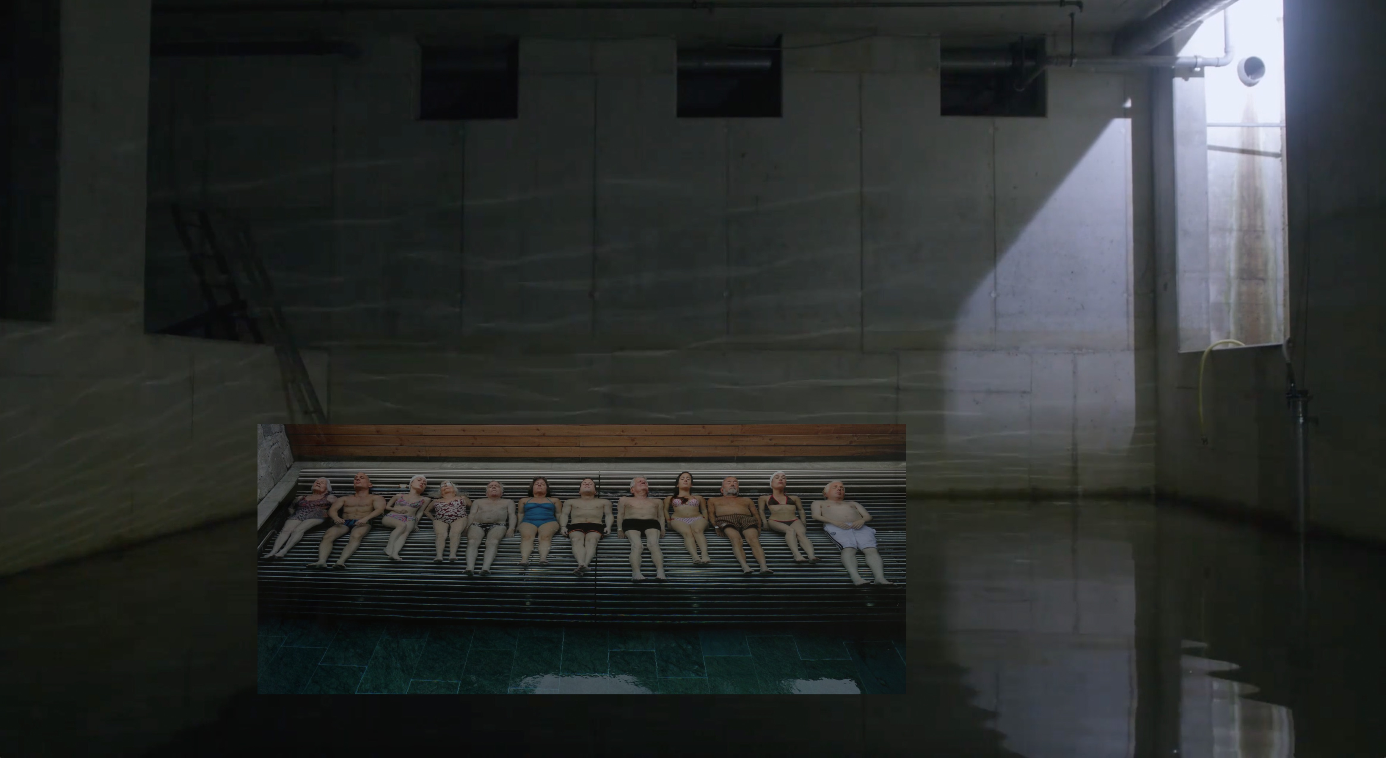 Für die Zeit der Architekturwoche verwandelt sich das Reservoir in ein Kurhaus- ein Ort der Ruhe und Kommunalität. Unser Vorschlag dreht sich um vier Rituale, um inne zu halten - baden, meditieren, essen und schlafen - die sich gegenseitig ermöglichen und bedingen. Die räumlichen Gegebenheiten des Gebäudes erwecken das Bild einer Herberge, oder suggerieren gar die Typologie eines Klosters. Die Rückhaltebecken im Untergeschoss erinnern an Thermalbäder, der durchstossende Hof an eine Kapelle, in den Abgrenzungen der Parkplätzen erkennen wir die privaten Zellen der Mönche und auf dem Dach einen gemeinschaftlichen Speisesaal. Angelehnt an die Idee eines Kuraufenthalts, welcher zwischen individueller Rückzugsmöglichkeit und gemeinschaftlichem Austausch balanciert, soll das Reservoir eine Woche lang Gäst*innen aufnehmen und ihnen die Möglichkeit geben, für je einen Tag ihrem Alltag zu entfliehen. Unsere Eingriffe beschränken sich dabei auf Programmation, Zugänglichkeit und Wärme - die räumlichen Qualitäten sind schon vorhanden und müssen nur bespielt werden. Die parkierten Autos werden stille Zuseher, die Tauchschule nimmt weiter-hin ihren Gang. Das Gebäude erhält eine neue Bedeutung als Ort der Gleichzeitigkeit. Die bestehenden und neuen Nutzungen schliessen sich nicht aus, sondern ermöglichen einen Perspektivwechsel auf den Wert von bestehender Bausubstanz, auf die Nutzungsstruktur unserer Stadt und nicht zuletzt auf unser Verständnis von individuellen und gemeinschaftlichen Raumbedarf.